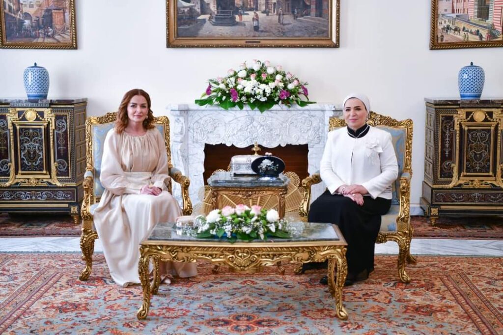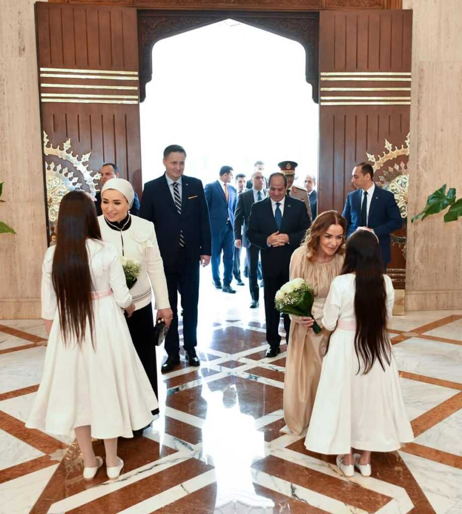 رحبت انتصار السيسي قرينة رئيس الجمهورية، ميرالا بيشيروفيتش، حرم رئيس مجلس رئاسة البوسنة والهرسك.