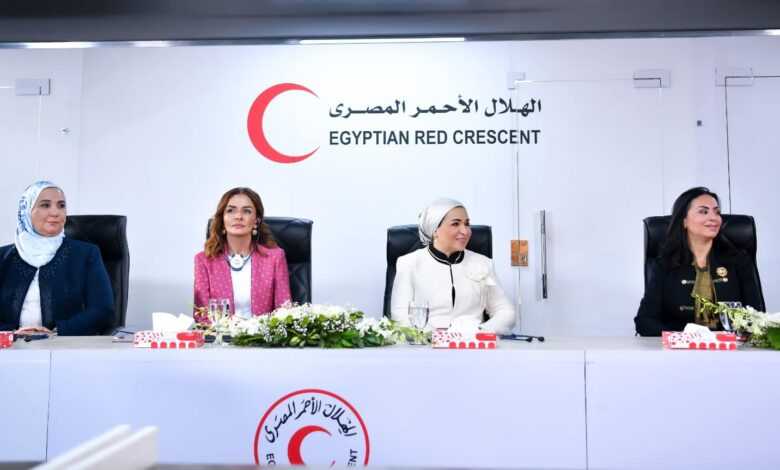 انتصار السيسي وحرم رئيس البوسنة تتفقدان غرفة عمليات الهلال الأحمر