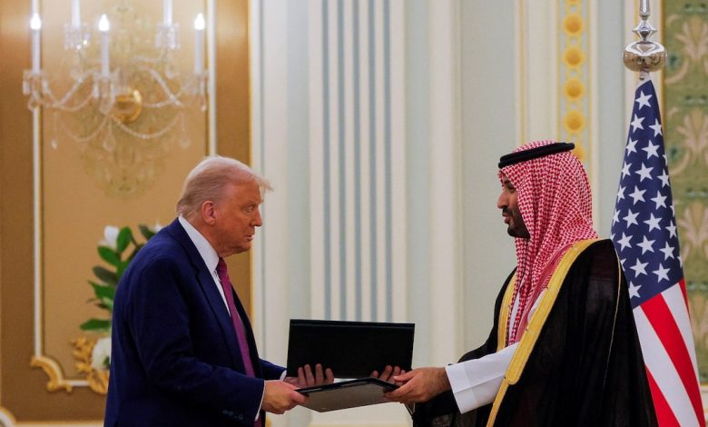 وجلس بن سلمان بجانب ترامب في البيت الأبيض يوم الثلاثاء، ووعد بزيادة استثمارات بلاده في الولايات المتحدة إلى تريليون دولار، مقارنةً بـ 600 مليار دولار كانت المملكة قد تعهدت بها خلال زيارة ترامب للسعودية في مايو الماضي. لكنه لم يقدم أي تفاصيل إضافية أو جدول زمني محدد لتحقيق هذا الهدف.