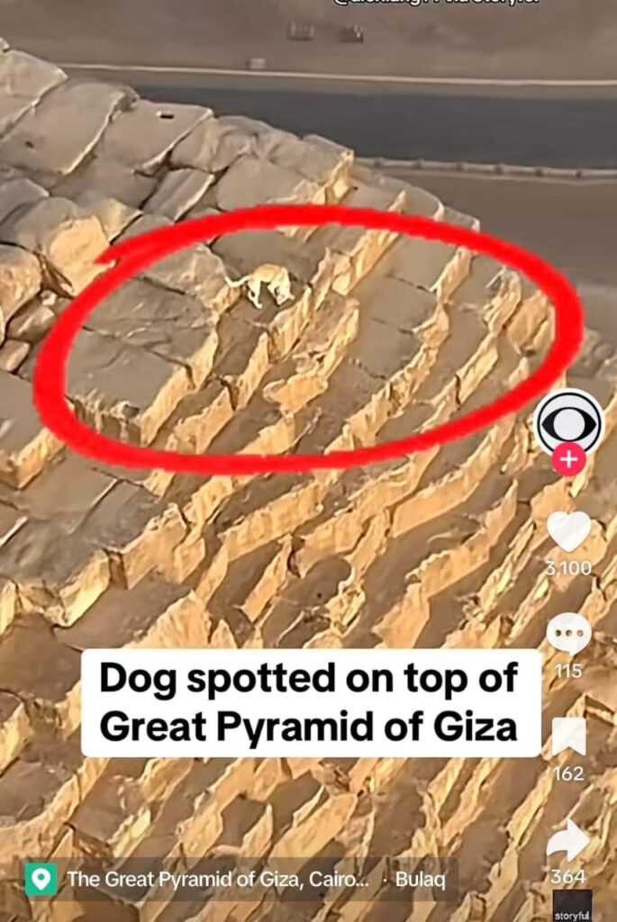 وكتب المستخدم: “تم رصد كلب يتسكع في أعلى الهرم الأكبر بالجيزة في مصر.