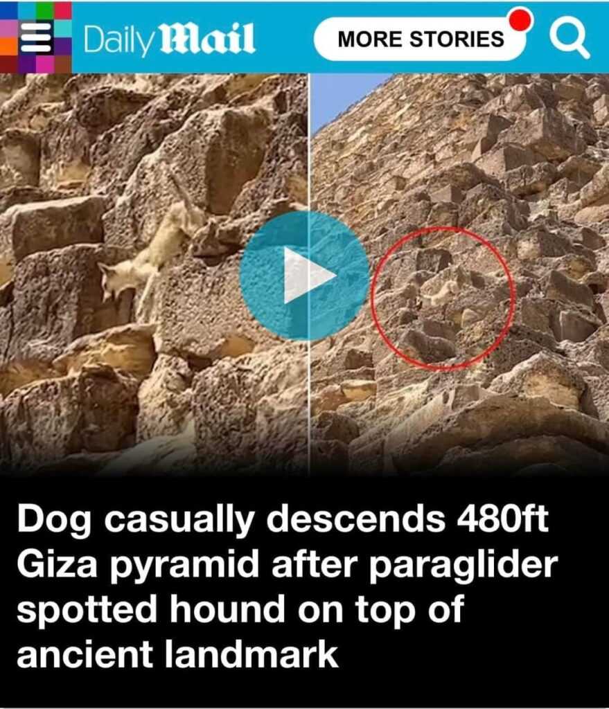 نشر موقع “ديلي ميل” عنوان “لحظة مذهلة تم رصد كلب على قمة الهرم الأكبر بالجيزة الذي يبلغ ارتفاعه 455 قدمًا بعد صعوده للنباح على الطيور”٠