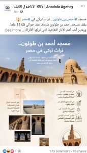 جدلٌ واسعٌ خلال الساعات القليلة الماضية أثارته وكالة الأنباء الرسمية – الأناضول، عندما زعمت بأن مسجد أحمد بن طولون هو أثرٌ تركي في مصر، ويمتد منذ نحو 1140 عامًا.