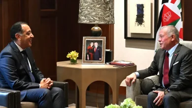رئيس الوزراء ينقل تحيات الرئيس السيسي للعاهل الأردني الملك عبدالله الثاني