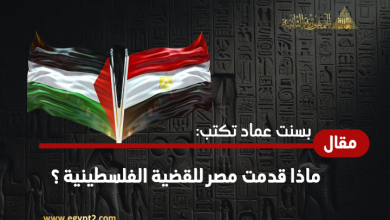 مقالات بسنت عماد تكتب: ماذا قدمت مصر للقضية الفلسطينية؟بسنت عماد سؤال قد يكون خبيثاً وقد يكون بريئاً، صار يتردد كثيراً وخاصة في أوساط الشباب العربي. سؤال يرتبط بما… أكمل القراءة »