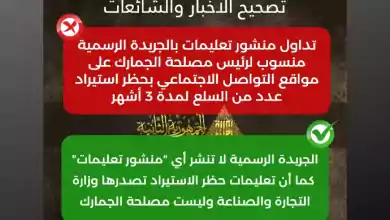 تداولت وسائل التواصل الاجتماعي وبعض المواقع الإلكترونية منشور تعليمات منسوب لرئيس مصلحة الجمارك على بحظر استيراد عدد من السلع لمدة…