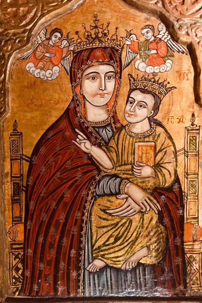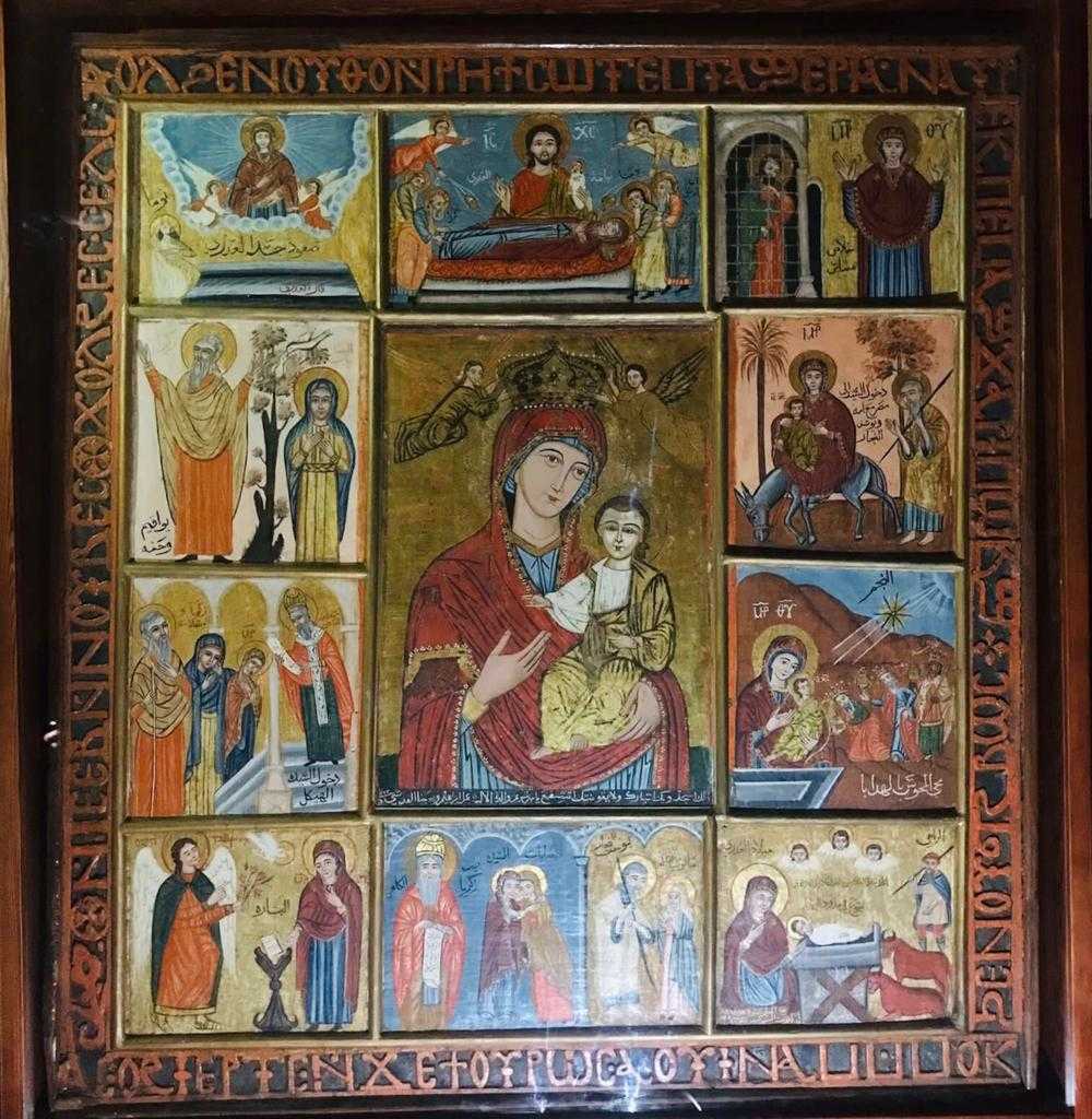وأضافت أنه من بين الأيقونات التي ستعرض؛أيقونة تُمثّل مشاهد سيرة حياة السيدة العذراء مريم؛ تصورها في المنتصف، تحمل يسوع الطفل، وعلى جانبيّ رأس السيدة مريم من أعلى؛ يوجد اثنان من الملائكة؛ يضعان التاج على رأسها، ويحيط بهما عشرة مشاهد من حياتها، وأيقونة أخرى تصور الهروب إلى مصر، حيث تظهر السيدة العذراء مريم، والطفل فوق الحمار، وخلفهما يوسف النجار، وفي خلفية الأيقونة؛ تظهر امرأة أخرى، بالإضافة إلى عنصر معماري، وأيقونة السيدة مريم العذراء تُرضع طفلها يسوع، ويحيطها ثلاث ملائكة، عن يمينها، وحمامة إلى يسارها.
