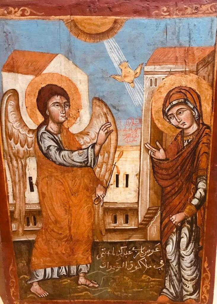 كما يضم المعرض أيقونة العائلة المقدسة، والقديس يوحنا المعمدان، وأيقونة ميلاد السيد المسيح، وأيقونة البشارة؛ التي يظهر فيها الملاك، أمام السيدة العذراء؛ يبشرها بحملها، ممسكًا بيده اليسرى فرعًا من الزهور، ويوجد طائر في الوسط.