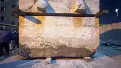 تابوت من عصر الأسرة السادسة والعشرين ووزنه 62 طن.. البدء في أعمال نقله من أرض جامعة بنها